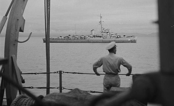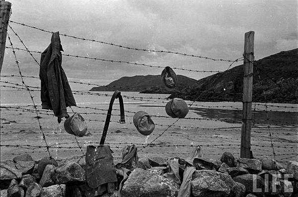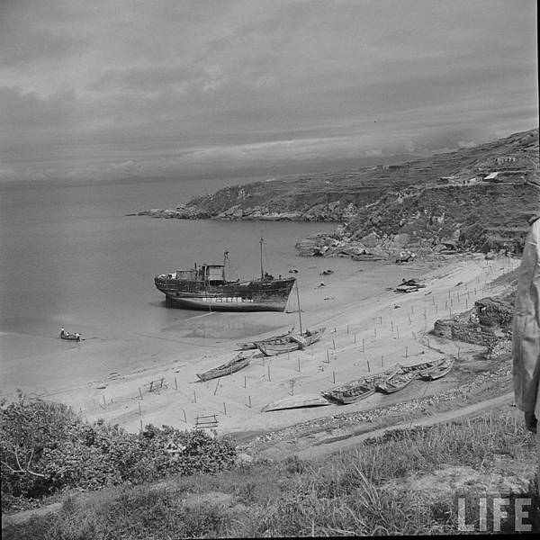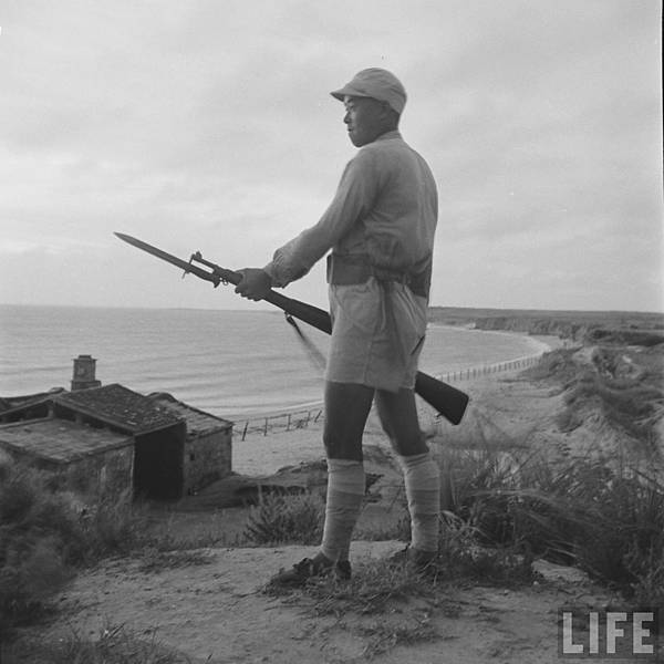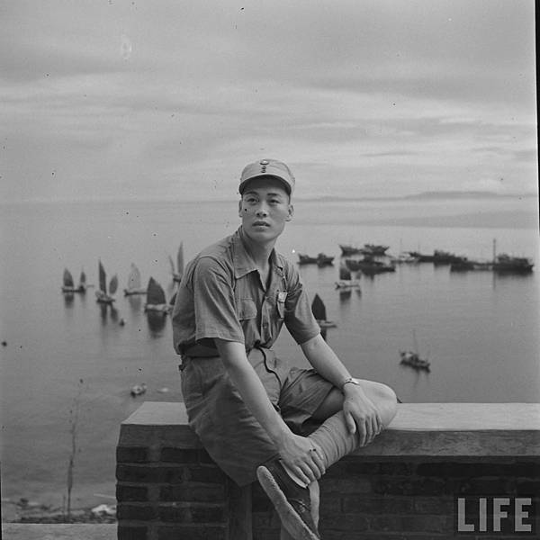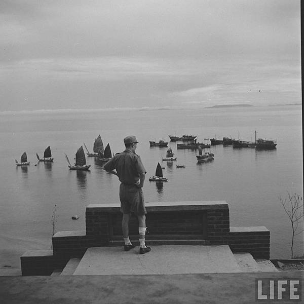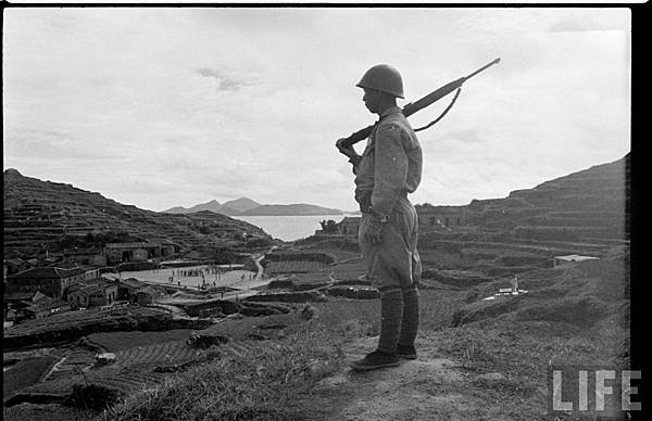 這張影像常見,站在高處的士兵凝望著下方的漁船,若有所思樣似乎在想著何時能