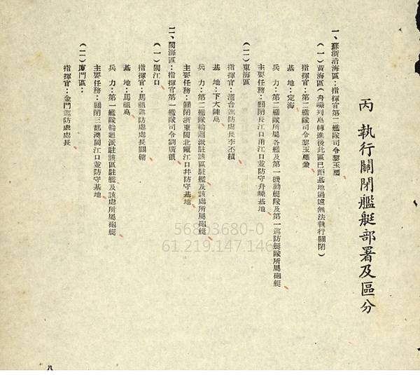 實施封鎖的海域起至蘇浙沿海至粵海.受限於噸位,海軍以國府佔領下的幾個小島,如舟山定海,
