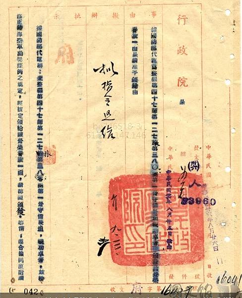 1948年4月,由陸軍總司令顧祝同簽核同意補發