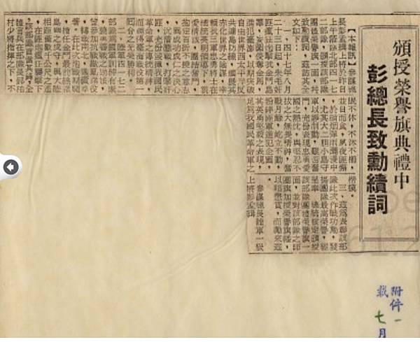 這是查閱到最早關於榮譽旗的檔案,1935年由中央印鑄局頒定國軍勳獎條例.