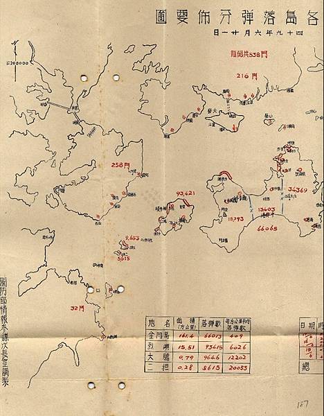 617砲戰,金門各守備區落彈數.