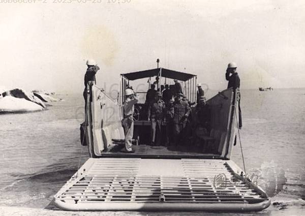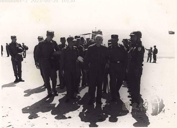 蔣先生步下登陸艇.