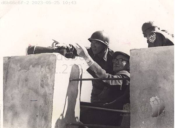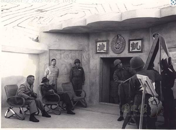 五七戰防砲射口.蔣先生親自檢查射向.