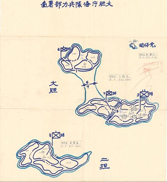 在蔣先生視察後,33師師長呈交之烈嶼戰備簡報.我僅挑用大二膽部分.