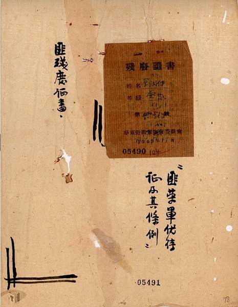 殘廢證,受傷治癒的士兵返鄉會得到地方政府的照顧.