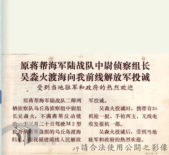 顯見共軍有利用各種心戰手段,以砲宣彈,海空飄等方式向外島駐軍散佈吳某叛逃案.