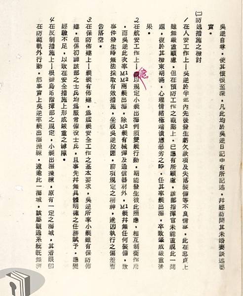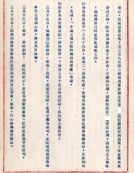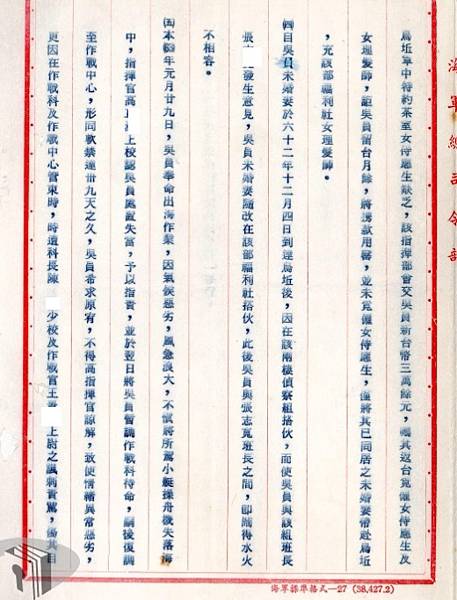吳案之檢討報告.吳遺失操舟機後,上級曾評估將其調回台灣,除吳某不肯外,指揮官亦