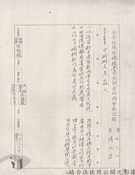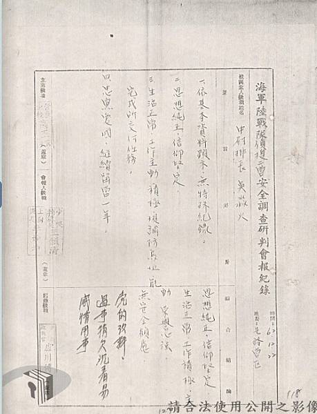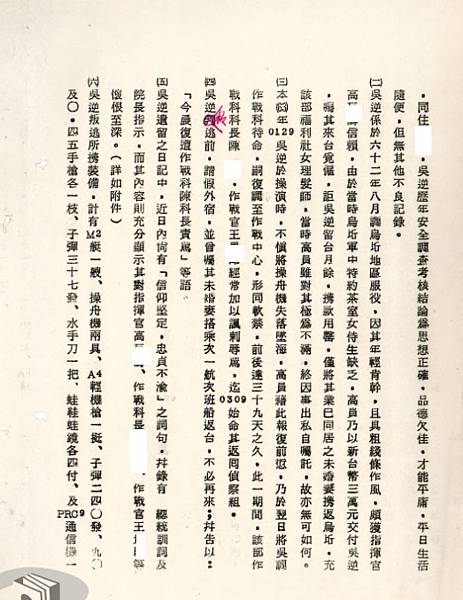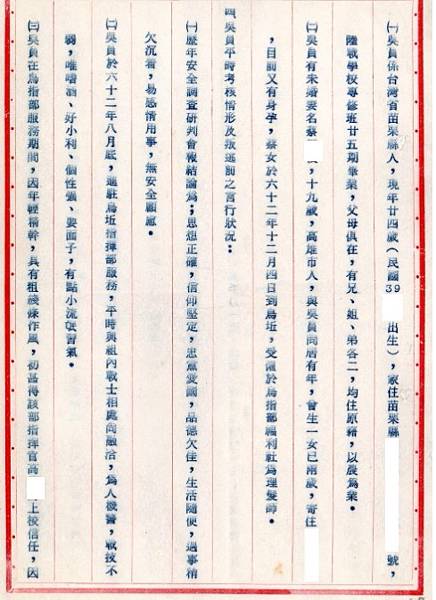綜觀以上檔案,吳某雖平日生活散漫,難以管理,但應該是上級心目中符合偵察隊精悍形