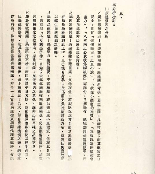 叛逃原因分析,從這些檔案可了解吳某本身有很大的問題,而指揮官的縱容更是難責