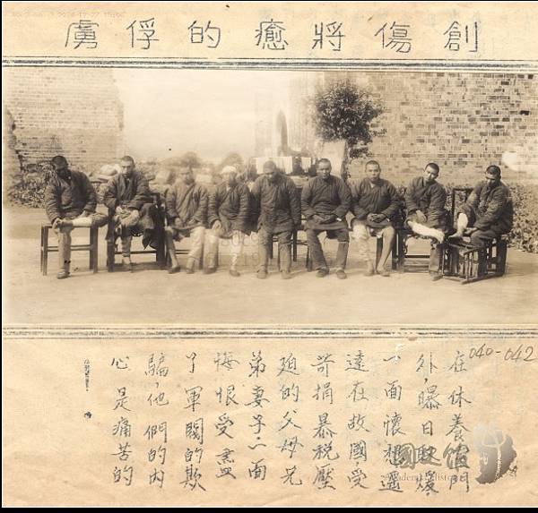 抓獲的日軍俘虜.日軍雖對我軍民手段殘忍,但我方為強化宣傳,這些抓來的